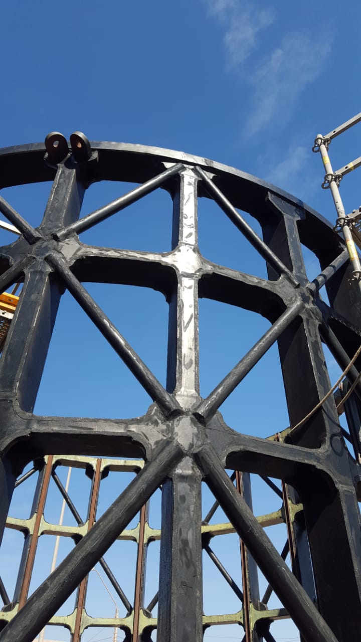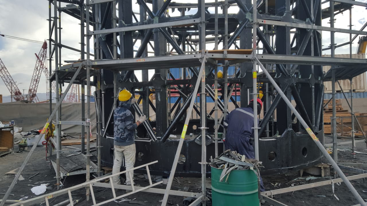 - Andamiaje: Perimetral completo para trabajo en altura sobre el cilindro